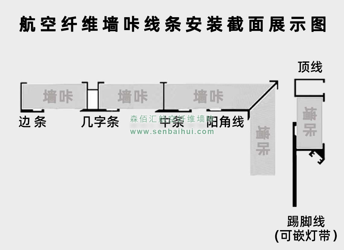 河南航空纤维墙咔铝合金带灯中条(哑黑氧化)